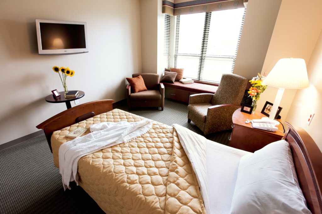 We offer long-term hospice and palliative care in our Leo Center for Caring, a quiet, 12-bed unit nestled in its own space on our Irondequoit campus. Admissions are accepted from the greater community. The Leo Center  provides a peaceful atmosphere that allows patients to complete their lives with dignity, sensitivity, and comfort. Our clinical staff is specially trained in providing hospice and palliative (comfort-oriented) care with compassion. Spacious rooms and comfortable surroundings allow patients and their families a special opportunity for peace and closeness.